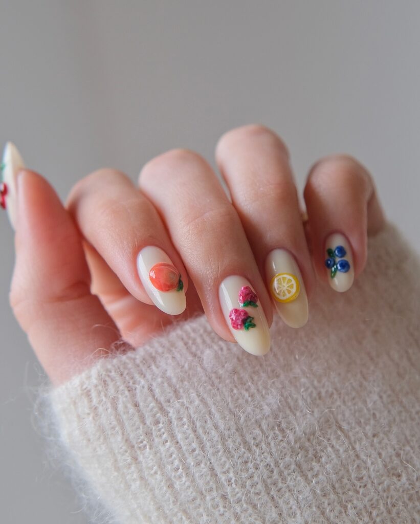 Add a touch of nature to your nails with dainty floral patterns. Tiny blossoms over a nude or pale pink base give your nails a feminine and graceful finish. This look proves that simple nail art can still feel fresh and fun.