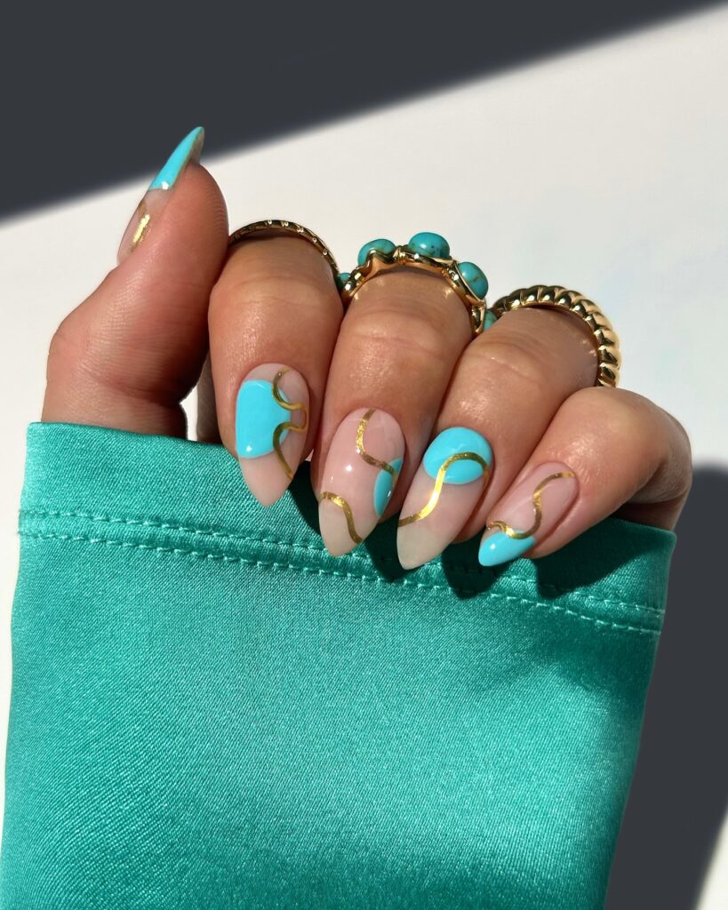 Add a dash of glam with metallic tips or lines. Gold or silver accents on a neutral base create an elegant balance between subtlety and shine.